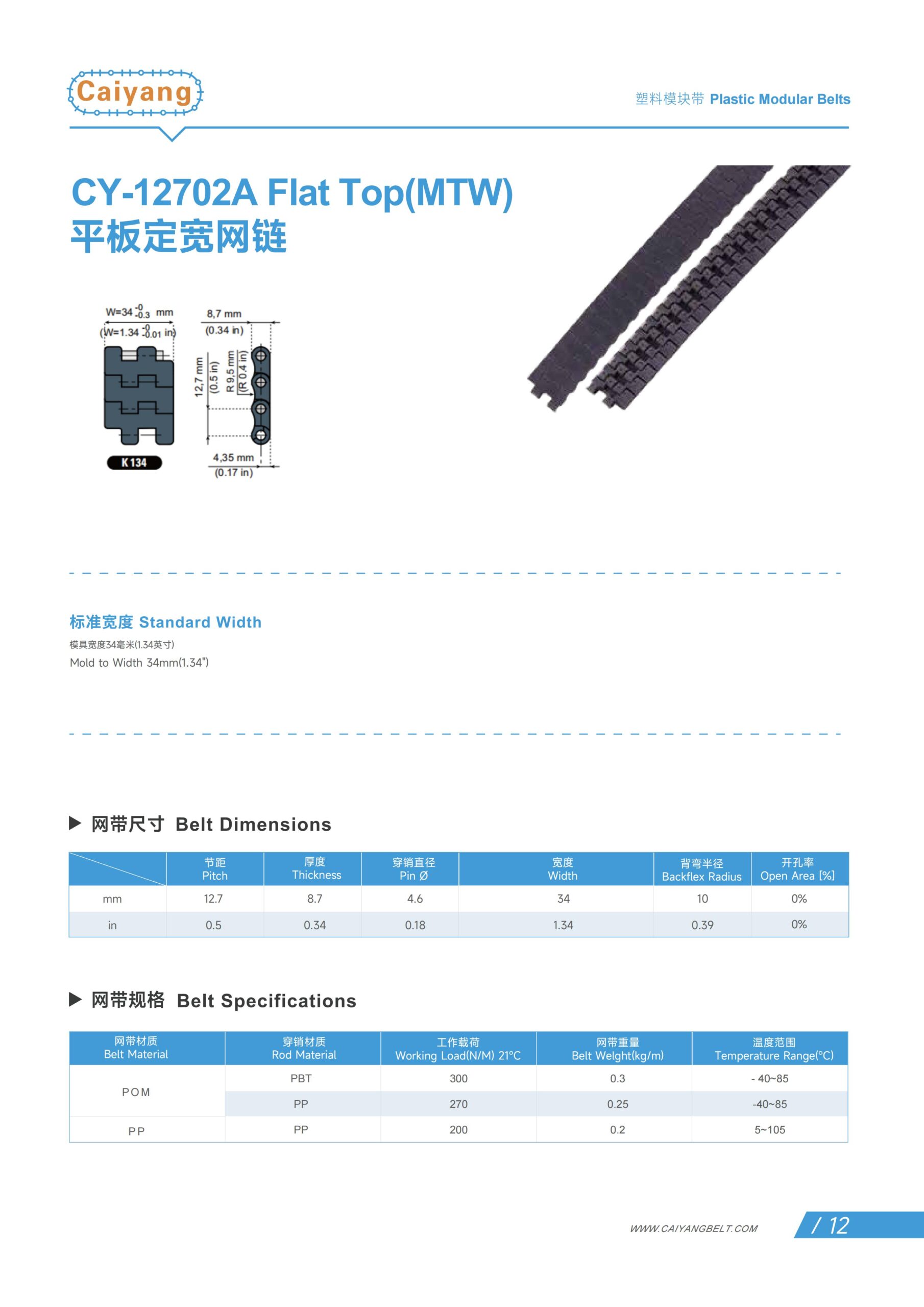 | Belt Material | Rod Material | Working Load(N/M) 21 ℃ | Belt weight(kg/㎡) | Temperature Range(℃) |