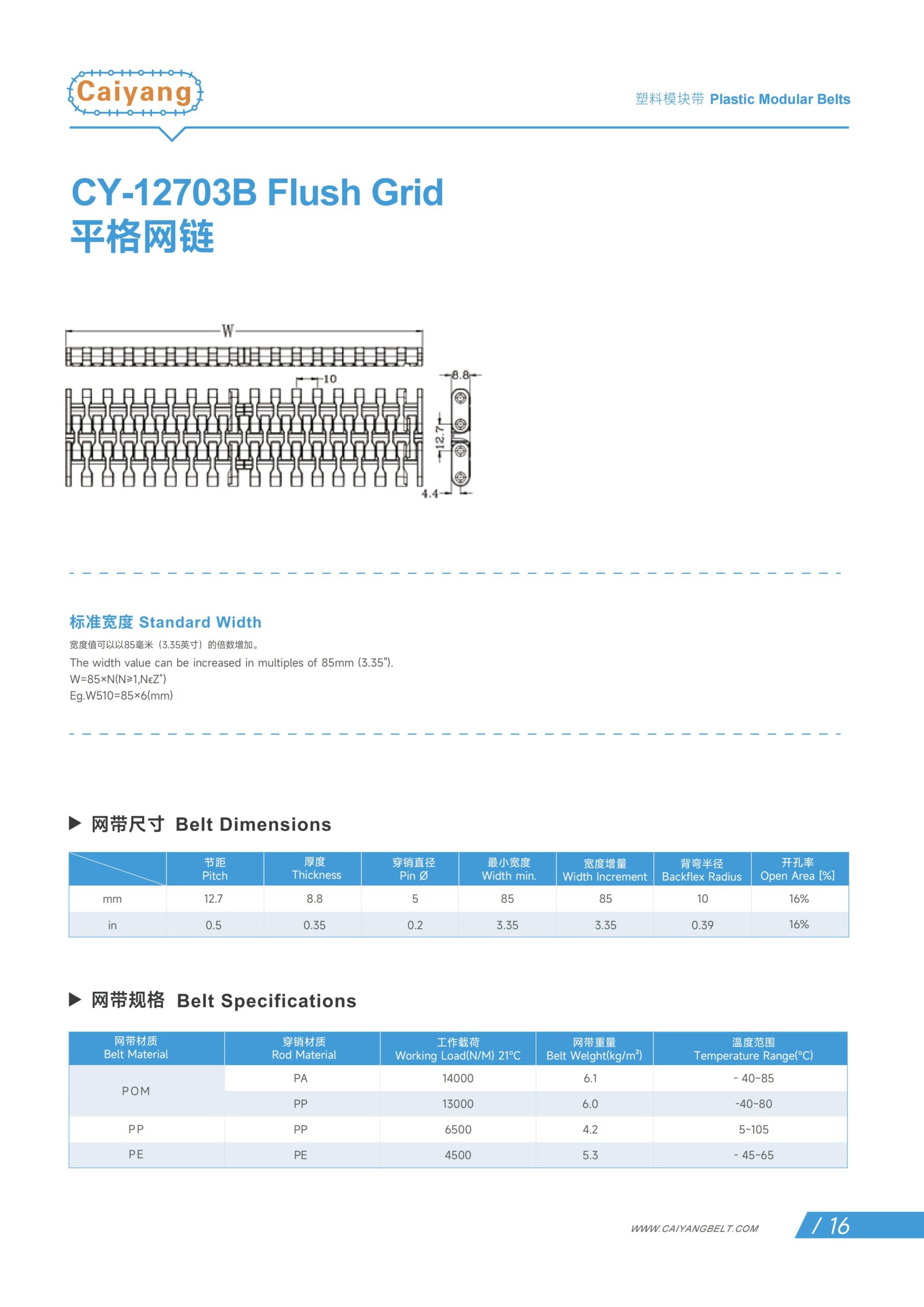 | Belt Material | Rod Material | Working Load(N/M) 21 ℃ | Belt weight(kg/㎡) | Temperature Range(℃) |