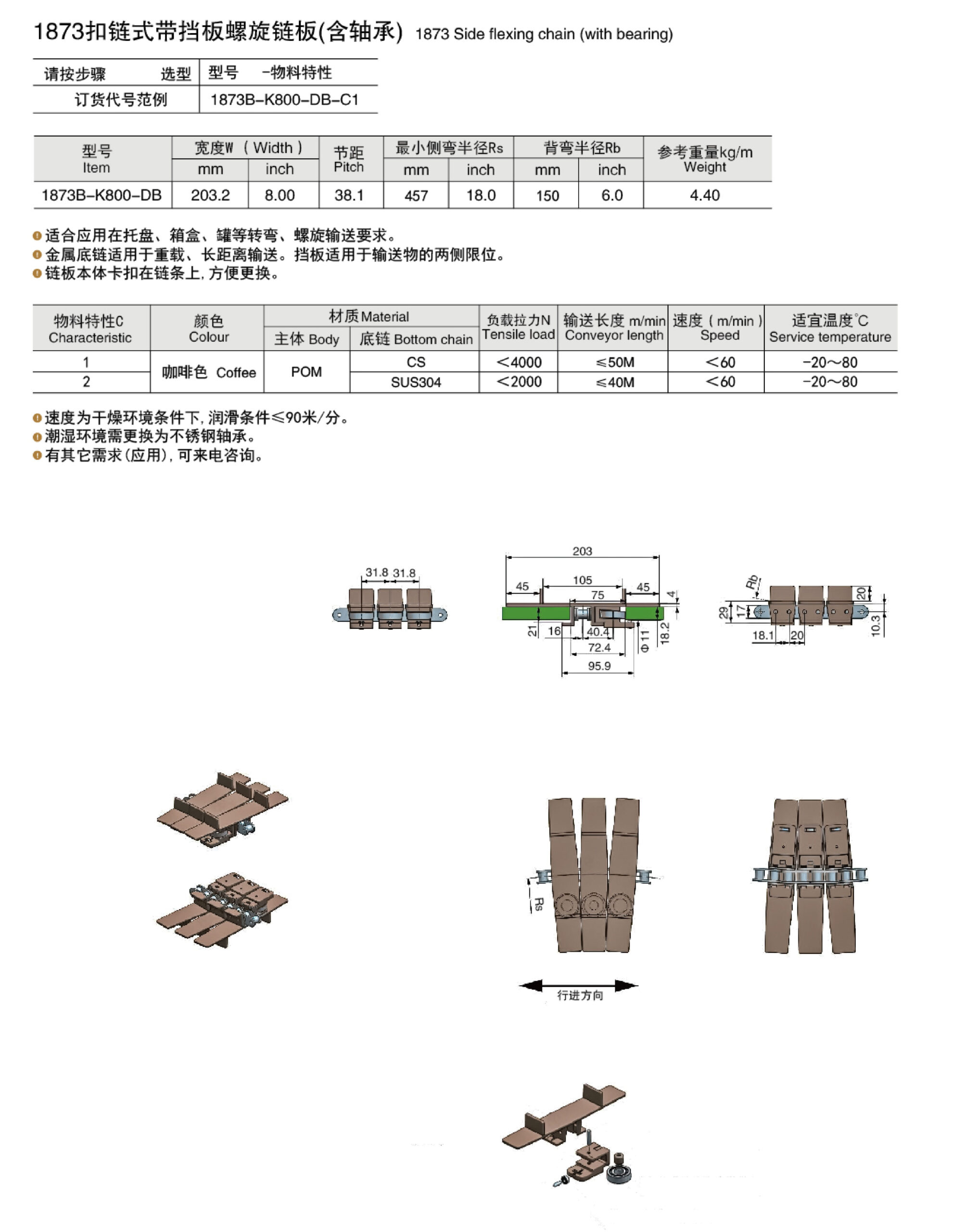 CY-1873 Side flexing chain (with bearing)