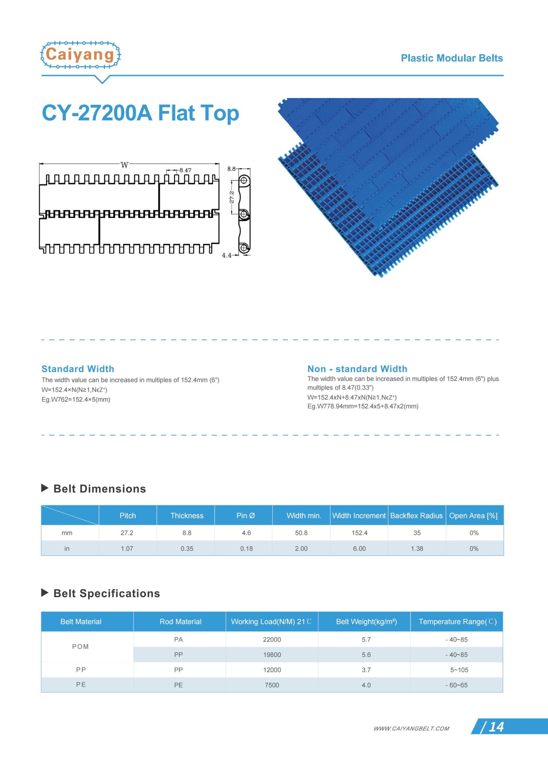 | Belt Material | Rod Material | Working Load(N/M) 21 ℃ | Belt weight(kg/㎡) | Temperature Range(℃) |