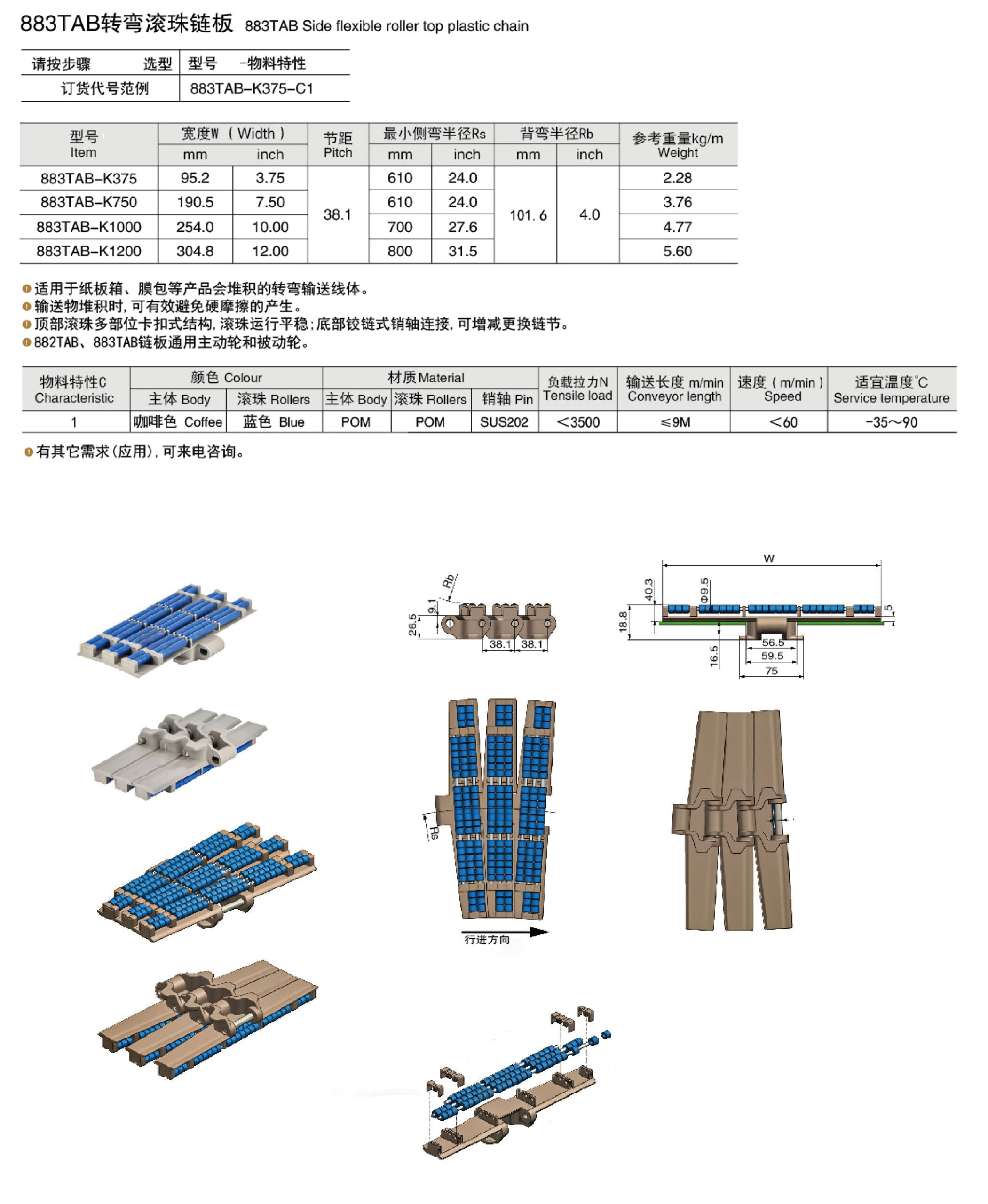 flexible roller top plastic chain