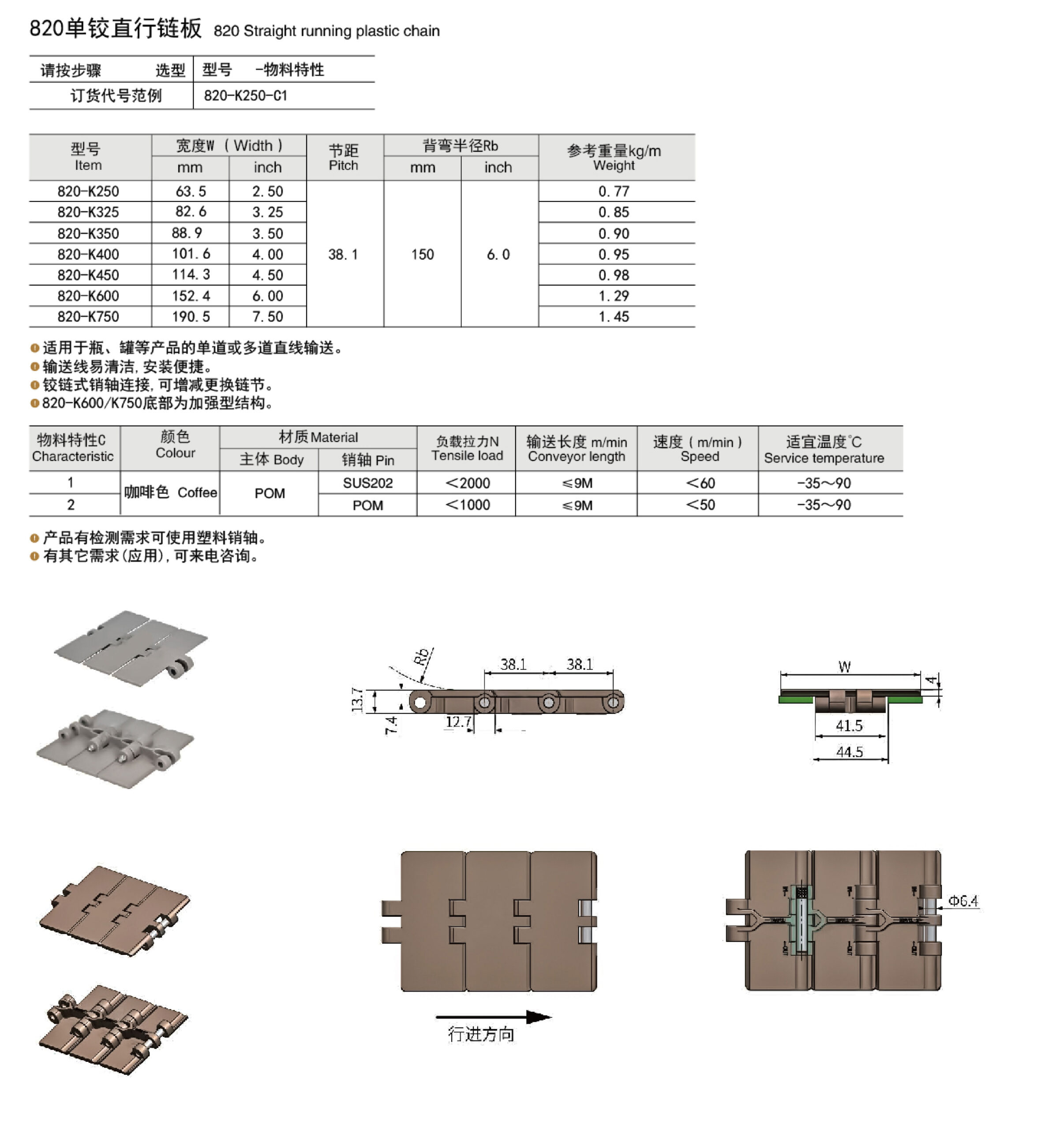 CY-820 Straight running plastic chain